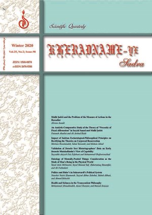 حسينزاده، مرتضي و همكاران (1398) «انسجام اصول فلسفي معادشناختي ملاصدرا»، خردنامة صدرا، شماره 96.