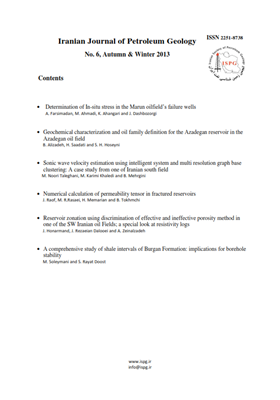چکیده این مطالعه قصد دارد تا میان لایه های شیلی سازند بورگان در این میدان نفتی را از دیدگاه پایداری دیواره چاه شناسایی کند. در روند انجام این مطالعه مجموعه ای از اطلاعات و نمونه ها شامل نمونه های مغزه از میدان تهیه شده و یک مطالعه موردی با جزییات ارائه می شود. برای تعیین کانی شناسی نمونه ها آزمایشات پراش اشعه ایکس روی نمونه های توده ای انجام گرفته است. كاني هاي رسي نمونه ها استخراج شده و به روش هاي نرمال، حرارتي و اشباع اتيلني آماده سازي شده و مجدداً آزمایشات پراش اشعه ایکس انجام گرفتند. مرحله بعد مطالعه با ميكروسكوپ الكتروني و اندازه گیری ظرفيت تعويض کاتیونی نمونه ها می باشد. با طیف سنجی پرتو گاما و استفاده از كراس پلات نوع كانيهاي رسي نمونه ها مشخص گردیدند. كوارتز و کانی های رسی كائولينيت و ايليت فراوانترين كاني هاي موجود در نمونه ها محسوب می شوند. سازند شیلی مورد مطالعه تمايل چنداني به آبگيري و تورم از خود نشان نمی دهد و مشکل آماس در تماس با سیالات حفاری پایه آبی را ندارد. پایین بودن مقادیر ظرفیت تبادل کاتیونی این مسئله را تایید می کند. تصاویر میکروسکوپ الکترونی نیز نفوذپذیری پایین سنگ را نمایش می دهد. می توان نمونه ها را جزء گروه شیل های ورقه ای و شكننده تقسیم بندی کرد که به هنگام حفاري ميتوانند منجر به شکست سازند در امتداد سطوح لایه بندی و ریزش دیواره چاه گردند. طراحی شیمیایی سیال حفاری در حل مشکل ناپایداری دیواره چاه در این سازند چندان موثر نخواهد بود و تنها ممانعت از نفوذ فشار و سیال حفاری با استفاده از مواد پرکننده می تواند پایداری را بهبود بخشد. مناسبترین روش در پایدارسازی دیواره چاه در این سازند استفاده از روش های مکانیک سنگی مانند انتخاب جهت و شیب مناسب چاه می باشد.
