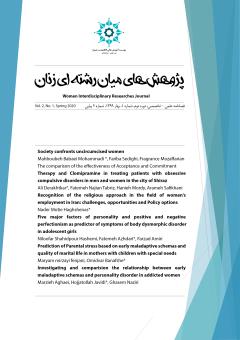پژوهش حاضر با هدف بررسی رابطه اختلال بدشکلی بدن با پنج عامل بزرگ شخصیت و کمالگرایی مثبت و منفی در دانشجویان دختر شهر شیراز انجام شد. مطالعه ی حاضر از نوع توصیفی-همبستگی و بر روی300 نفر از دانشجویان دختر 22-18سال شهر شیراز در دانشگاه فاطمیه و دانشگاه شیراز و به شیوه ی نمونه گیری دسترس انجام شد. ابزار گردآوری داده ها پرسش نامه های ترس از تصویر بدن لیتلتون (BICI, 2005 (، نئو فرم کوتاه پنج عامل بزرگ شخصیت(NEO-60) و پرسش نامه ی استاندارد کمالگرایی مثبت و منفی تری-شورت و پرسش نامه جمعیت شناختی بودند. داده ها توسط نرم افزار 21-spss مورد تجزیه و تحلیل قرارگرفتند. با توجه به نتایج تحلیل ضریب همبستگی پیرسون به دست آمده، نشان داد که بین متغیر های نوروز گرایی، توافق گرایی و برون گرایی با اختلال بدشکلی بدن همبستگی مثبت معنادار وجود دارد و بین متغیرهای وجدانی بودن و گشودگی با اختلال بدشکلی بدن همبستگی معناداری وجود ندارد. نتایج حاصل از یافته ها نشان داد از میان پنج عامل بزرگ شخصیت بین نوروز گرایی (بتا = 395/0) برون گرایی (بتا = 144/0) و توافق گرایی (89/0 = بتا) با اختلال بدشکلی بدن ارتباط مثبت معناداری وجود دارد. بین اختلال بدشکلی بدن با کمالگرایی منفی رابطهی معنادار دارد. همچنین نتایج تحلیل رگرسیون نشان داد که کمالگرایی منفی قوی ترین پیش بین برای اختلال بدشکلی بدن می باشد (477/ 0= بتا). علاوه بر این بین کمالگرایی مثبت با اختلال بدشکلی بدن رابطه غیرمستقیم وجود دارد (224/0 = بتا). بدین معنی که باافزایش مولفه ی کمالگرایی مثبت، اختلال بدشکلی بدن کاهش پیدا می کند. نتایج حاصل از یافته ها نشان داد از میان پنج عامل بزرگ شخصیت، سه عامل نوروز گرایی، برون-گرایی و توافق گرایی قوی ترین پیش بین ابتلا به اختلال بدشکلی بدن می باشد و همچنین کمالگرایی منفی میتواند موجب افزایش بروز اختلالات شود که این کمالگرایی منفی میتواند در ارتباط با متغیر صفات شخصیتی که از مولفه های مهم در پیش بینی اختلال بدشکلی بدن می باشد موجب ایجاد و تشدید اختلالات شود؛ درحالی صفات شخصیتی مطرح شده با کمالگرایی مثبت میتواند نتیجه ی عکس کمالگرایی منفی را بیان کند.