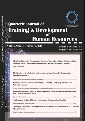 The aim of the present study was to develop a framework for workplace learning. The research paradigm was qualitative and the grounded theory research method was use. The research population consisted of all the employees and members of Chamber of Commerce. Then 18 informants were selected by targeted sampling method until reaching the data saturation. The research tool was an in-depth semi-structured interview. In order to analyze the data, coding and categorization were used by Atlas ti software and in three stages of noticing, collecting and thinking. In order to evaluate the data strength in the present study, three criteria of "acceptability", "reliability" and "verifiability" were used. Based on the findings, the framework of the workplace learning consisted of the environment (equality and justice, working environment, learning culture and supportive work environment), the employees (interest in work and learning, responsibility and intelligence and discipline), the management (leadership power, scientific literacy And ethical virtues), the curriculum (goal setting and purposefulness, educational content, teachers 'ability, supervision and implementation, feedback and correction) and the interaction and integration (management-staff interaction, colleagues' interaction with each other, combination of formal and experimental education, integration). Outcomes of workplace learning include organizational efficiency and effectiveness, financial benefit, cohesiveness and expertise, career advancement along with employee motivation.