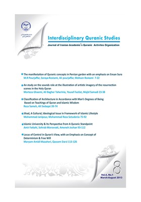 In this paper, by studying Persian gardens, particularly in the Islamic period, and examining its general characteristics of the physical environment (water, plants, etc.), the elements of garden has been studied. Then by exploring the text of the Qur’an, especially Ensan Surah and its related interpretations, Quranic paradise elements has been reviewed in the elements of Dolat Abad garden. The review has been done through Structural - spatial analysis of Dolat Abad garden and adopting them with quranic concepts. The purpose of this study was to extract the common blessings of the Garden of Eden with the Dolat Abad garden. Techniques used in this research are descriptive – analytical. Data was collected through visiting, field harvesting and library and comparing them with the quranic interpretations. The results show that the elements of a Persian garden have been referred to as Heaven’s blessings. These blessings have remained some material and spiritual metaphors both in the body of the garden and its designer believes either objectively or subjectively.
